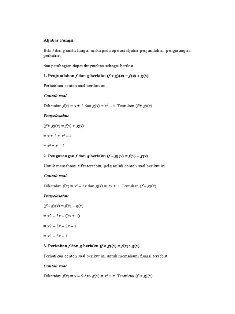 Contoh Soal Operasi Aljabar Pada Fungsi - Contoh Soal Aljabar Dan Jawabannya - Kunci Ujian - Jika f dan g adalah fungsi, maka d f adalah daerah asal fungsi f dan d g adalah daerah asal fungsi g.